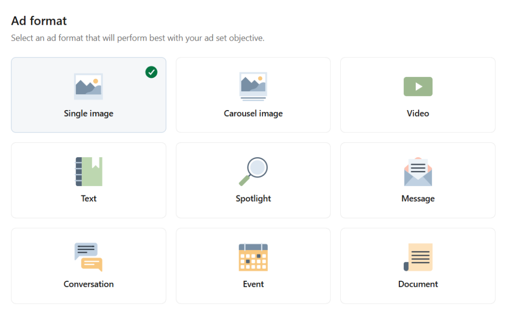 This step tells LinkedIn what kind of audience to show your post to. Choosing the wrong objective can waste your entire budget.